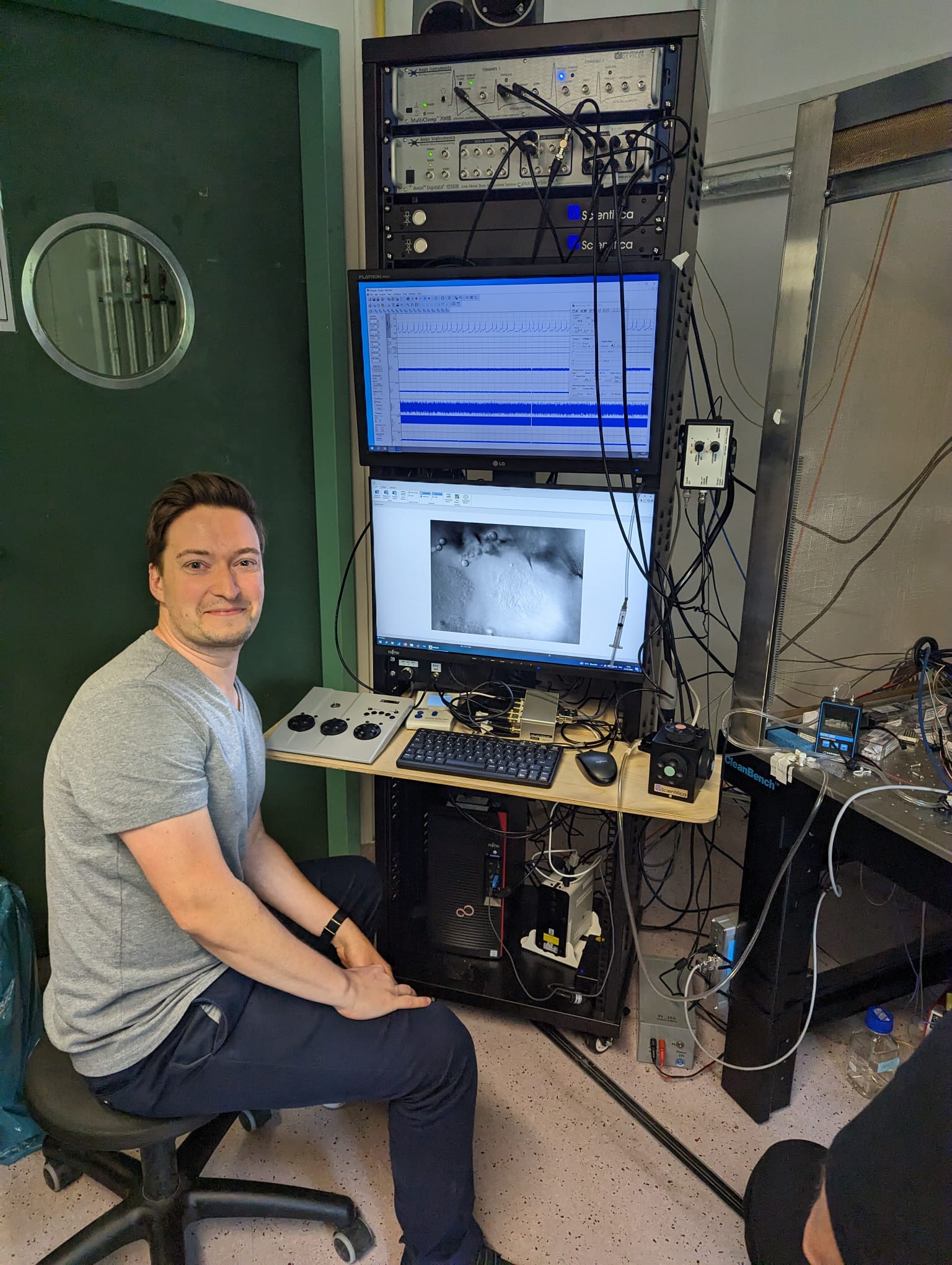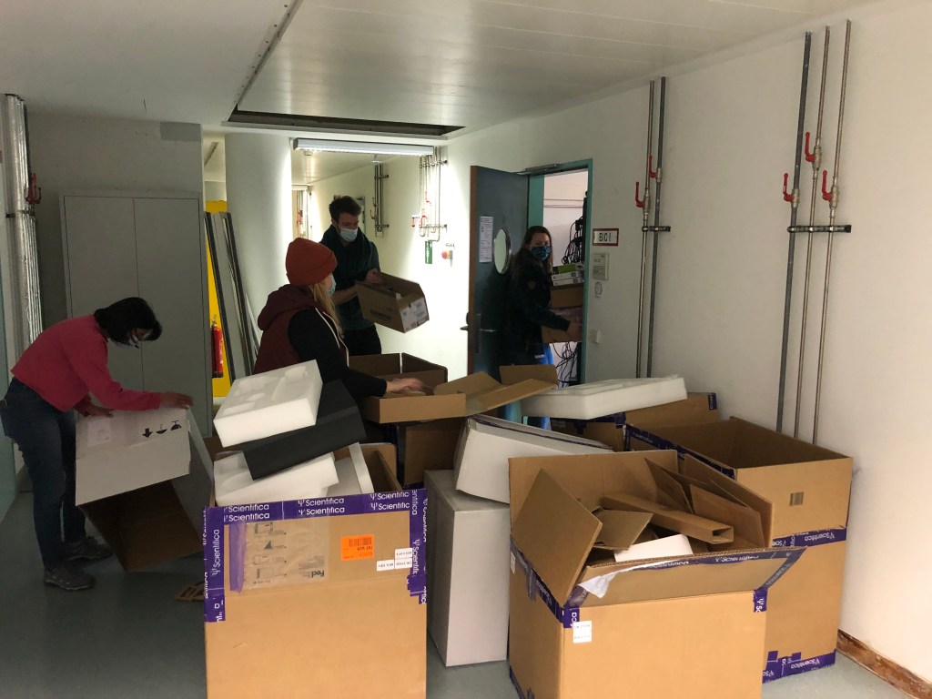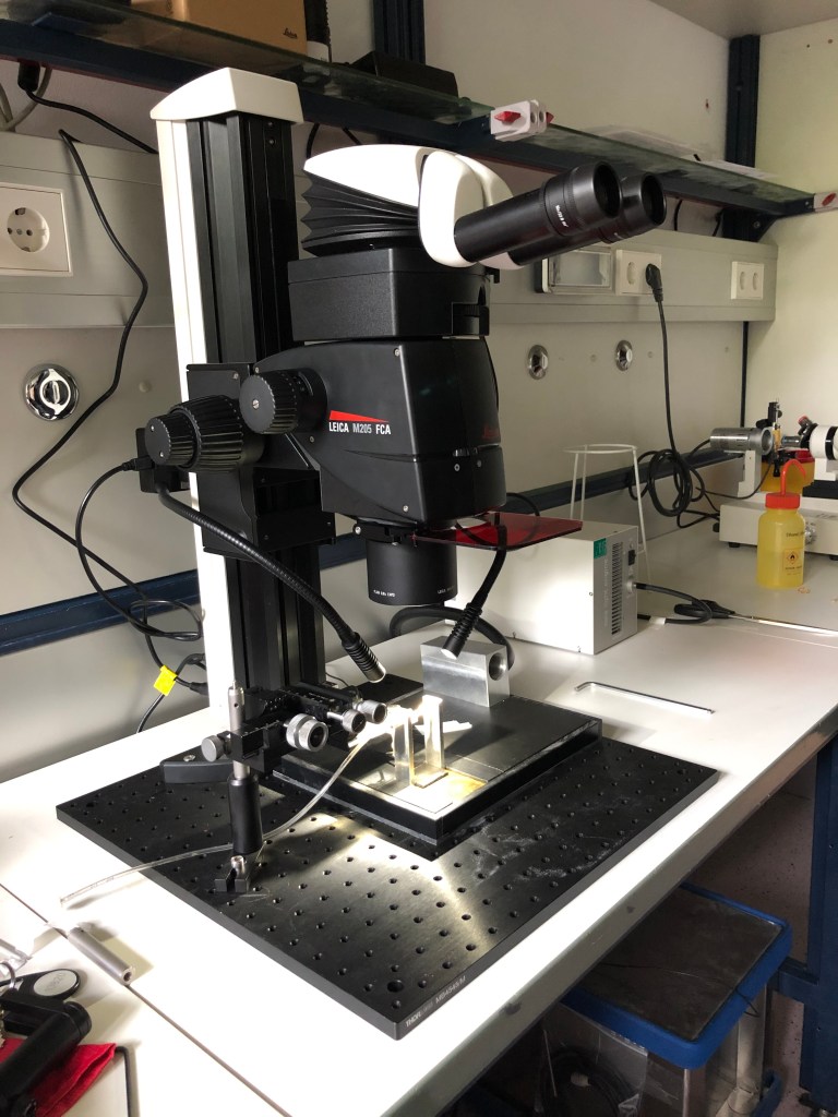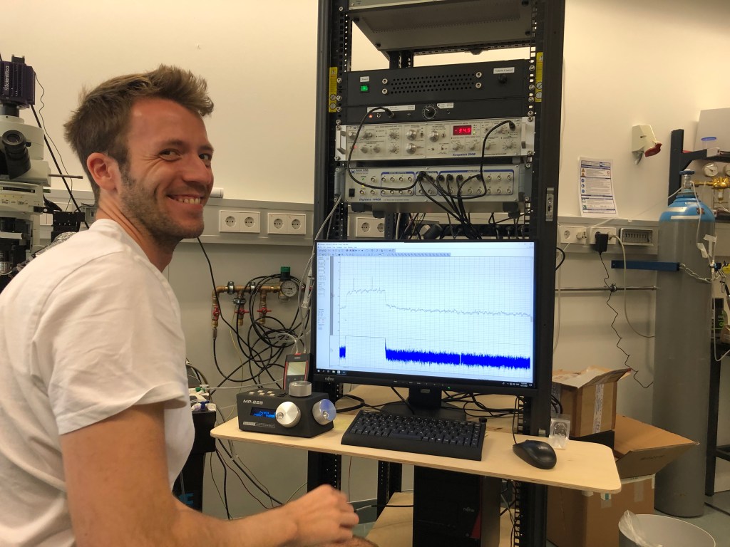 Jan wondering what he ordered last night…Packing books from boxes.Taking out the trash 😉Will it fit?Putting together our ‘Double-Trouble’ patch rig.Till ‘Bill’ Bockemühl – the beauty of Würzburg.Federico joins the lab as an intern and presents us with some awesome, authentic Tiramisu.Tina testing her new UV-Glasses.Rituja presenting her collection of exquisite salines.